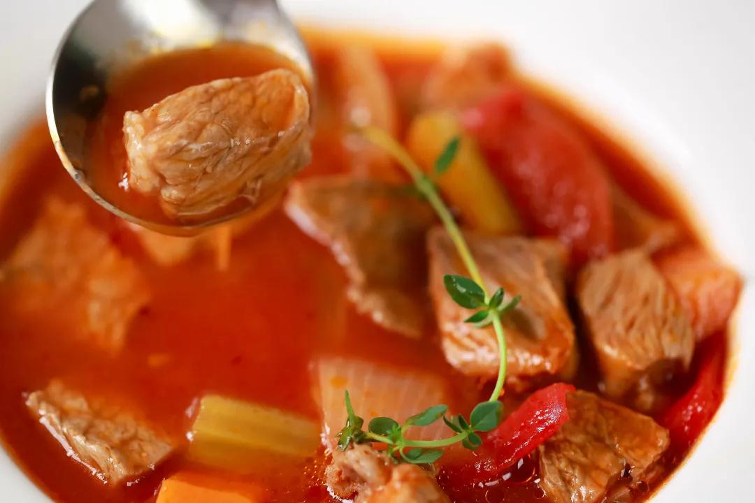 5)翻炒至番茄變成糊狀,加入開水沒過牛肉,大火燒開后,轉(zhuǎn)小火燉45分鐘;