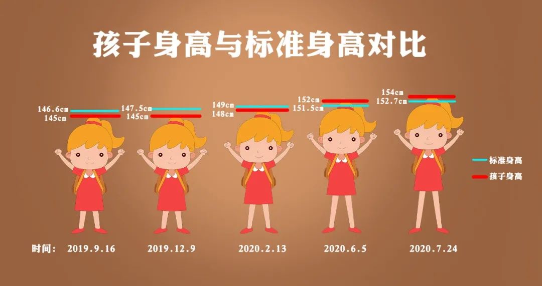 距離與家長(zhǎng)初次溝通到現(xiàn)在已達(dá)8個(gè)多月,孩子的身高已經(jīng)長(zhǎng)到152cm(11.9歲女孩標(biāo)準(zhǔn)身高在151.5cm),哦買噶!比標(biāo)準(zhǔn)身高還高出了0.5cm,不僅成功追趕,而且反超。