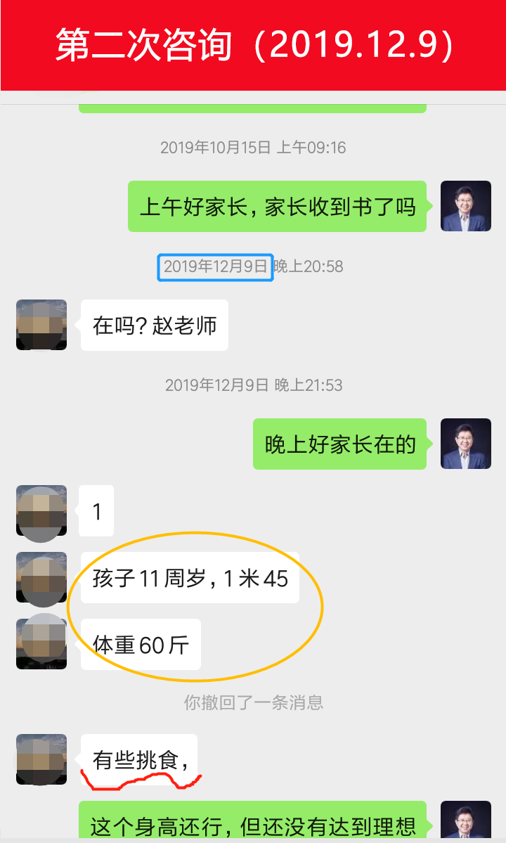 這是這位家長(zhǎng)初次咨詢野小蠻身高管理專家時(shí)的記錄: