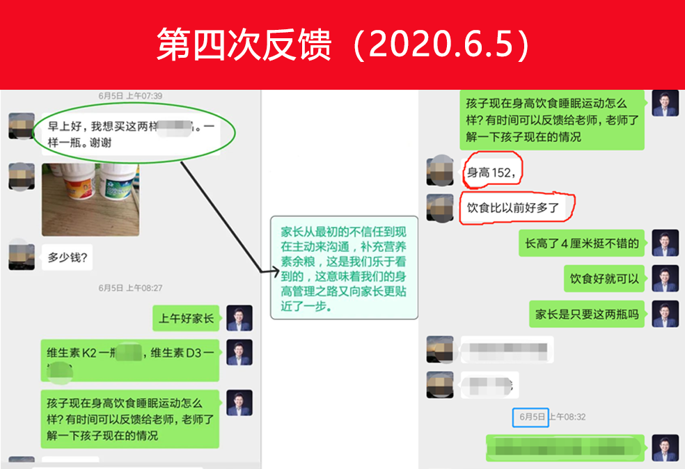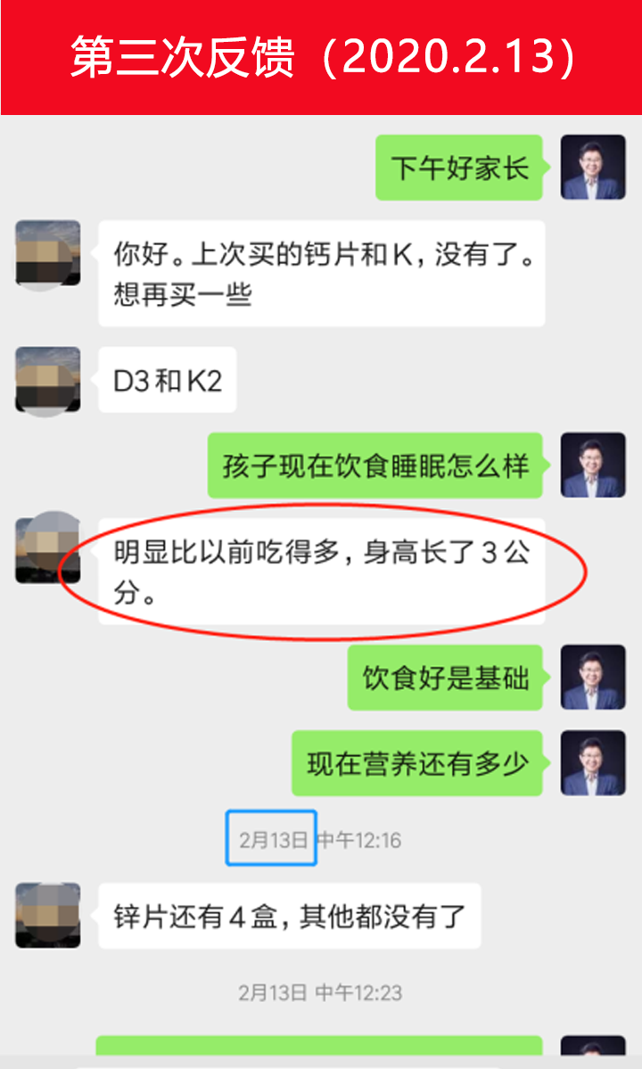 從家長(zhǎng)的反饋情況來(lái)看,孩子的飲食狀況變好,飯量增多,身高也增高了3cm,也就是目前身高在148cm(11.5歲女孩標(biāo)準(zhǔn)身高在149cm),身高差距已經(jīng)縮短為1cm,效果還是非常顯著的。